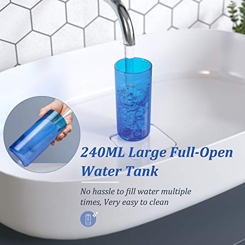 240ML Full-Open Water Tank: Detachable full-open water tank allows you to inside of the water tank thoroughly and easily than others. 240ml water tank big enough for a thorough flossing, No hassle to fill the water multiple times.Bring you a comfortable, uninterrupted oral dental flossing experience.
