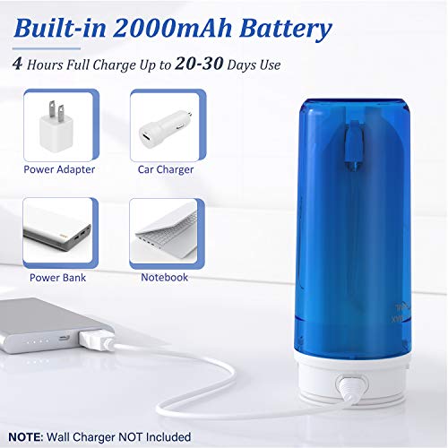 2000mAh Large Capacity Rechargeable Battery: YaFex Water Flosser is equipped with built-in 2000mAh rechargeable lithium battery, Only 4 hours charge, Up to 20-30 days continuous use. Its USB interface charging design is so convenient to be charged with computer, power adapter, power bank or car charger.