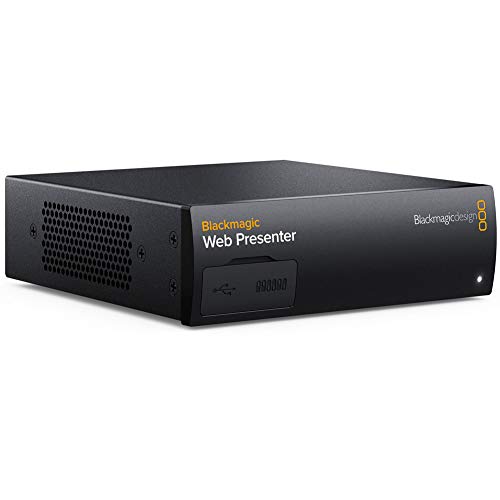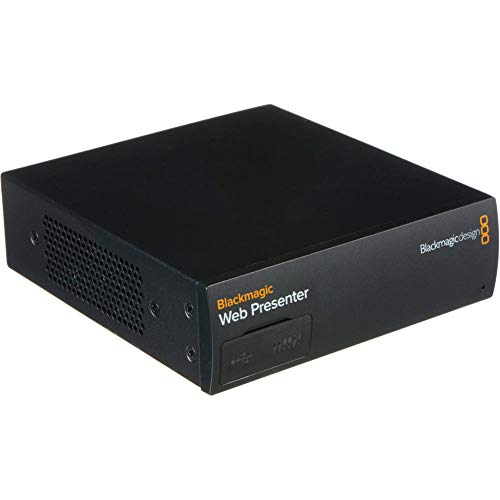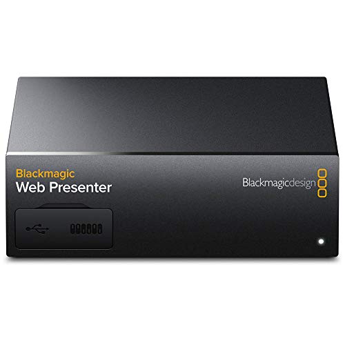 Blackmagic Web Presenter makes any professional SDI and HDMI video source appear as a 720p HD USB webcam for streaming high quality video to millions of viewers over the internet! Blackmagic Web Presenter makes any SDI or HDMI video source appear as a USB webcam for higher quality web streaming using software such as Skype or streaming platforms such as YouTube Live, Facebook Live, Twitch.tv, Periscope and more! Blackmagic Web Presenter includes 12G-SDI and HDMI inputs, an XLR microphone input, HiFi audio input, and Teranex quality down conversion for converting any SD, HD or Ultra HD video source to 720p for easy, low data rate, high quality streaming. Plus, Blackmagic Web Presenter can even live switch programs using its built in 2 input production switcher if you add the optional Teranex Mini Smart Panel!Converts any SDI or HDMI source to USB webcam video in 720p HD format