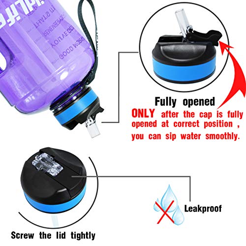 * Life time friendly and easy to reach support❤DAILY TIME MARKED WATER BOTTLE:(Have 43OZ and 1 gallon water bottle,please choose correct size what you need)Now, it's even easier to hydrate with the perfect amount of water each day(Warmly Notice:this bottle is plastic and big, easy to squeeze and dent in the shipping. If it was damaged accidently when you receive, please contact us immediately).It high quality drink reminder water bottle with convenient hourly time markers to help you boost your daily water intake.