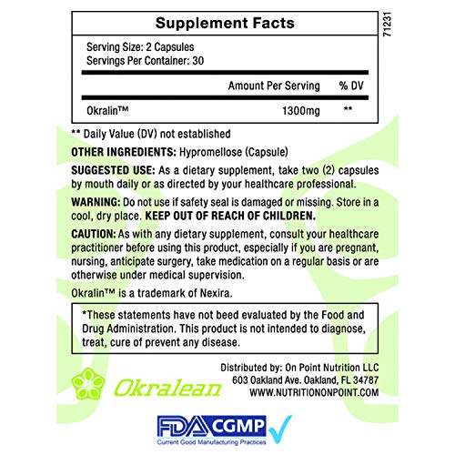 HEALTHY, NATURAL FORMULA - Crafted in an FDA and GMP Certified Facility in the USA, our formula contains only the best all natural ingredients Okralean is clean and contains no harmful fillers or additives or nasty "other ingredients", no sugar, no colorants, no common fillers, no silica or magnesium stearate,.