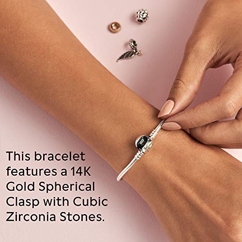 PANDORA Jewelry Moments Charm Cubic Zirconia Bracelet in Sterling Silver and 14K Yellow Gold, 7.5"